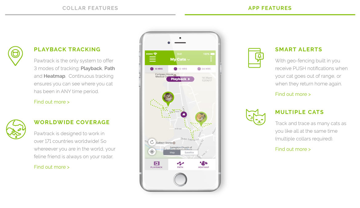 Pawtrack is a tracking collar and app created specifically for cats. I was commissioned by ChilliApple to work with them on a redesigning the website and creating a brand new app.